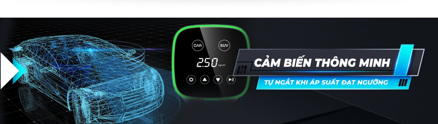 Được trang bị công nghệ cài đặt thông số hơi tự động ngắt khi áp suất lốp đạt ngưỡng. Với công nghệ cài đặt thông số hơi tự động, VIETMAP P01 sẽ giúp bạn yên tâm hơn mỗi khi bơm; không lo tình trạng bánh xe quá căng hay non quá, đảm bảo an toàn tuyệt đối trên mọi nẻo đường.